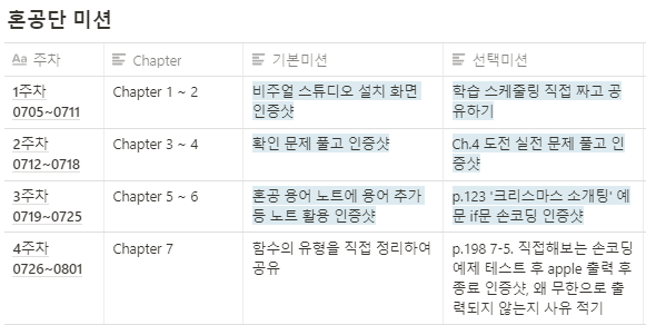 | [혼공학습단 6기] 1주차 기본 미션, 선택 미션 (0) | 2021.07.05 |