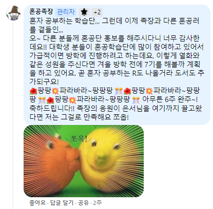 혼자 공부하는 학습단의 경우 같은 입장인 사람들이 남겨온 자료들도 보기 좋게 되어있고,