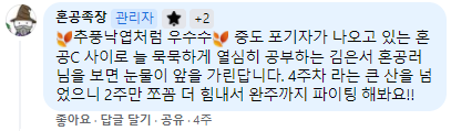 그 응원에 힘입어 더 열심히하고자 노력했던 것 같다.
