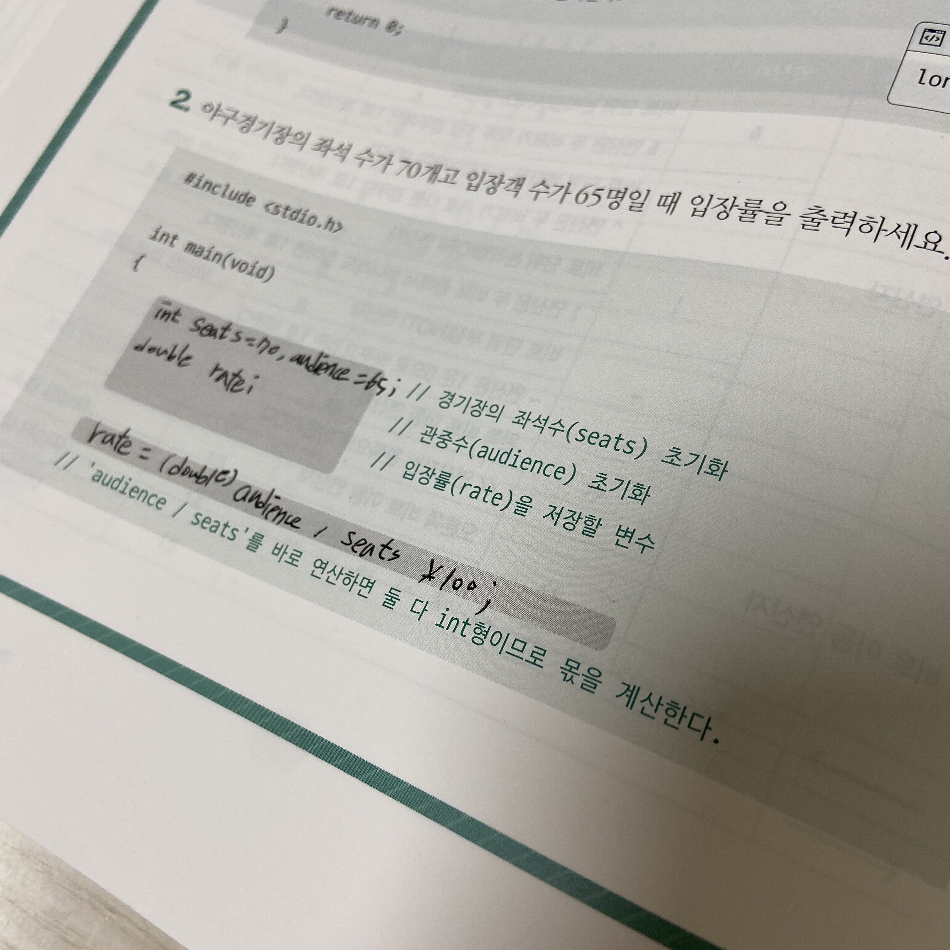 11) cm를 100으로 나누어 준다. 앞서 배운 복합대입 연산자를 사용하여 식을 간단하게 만들어 준다.